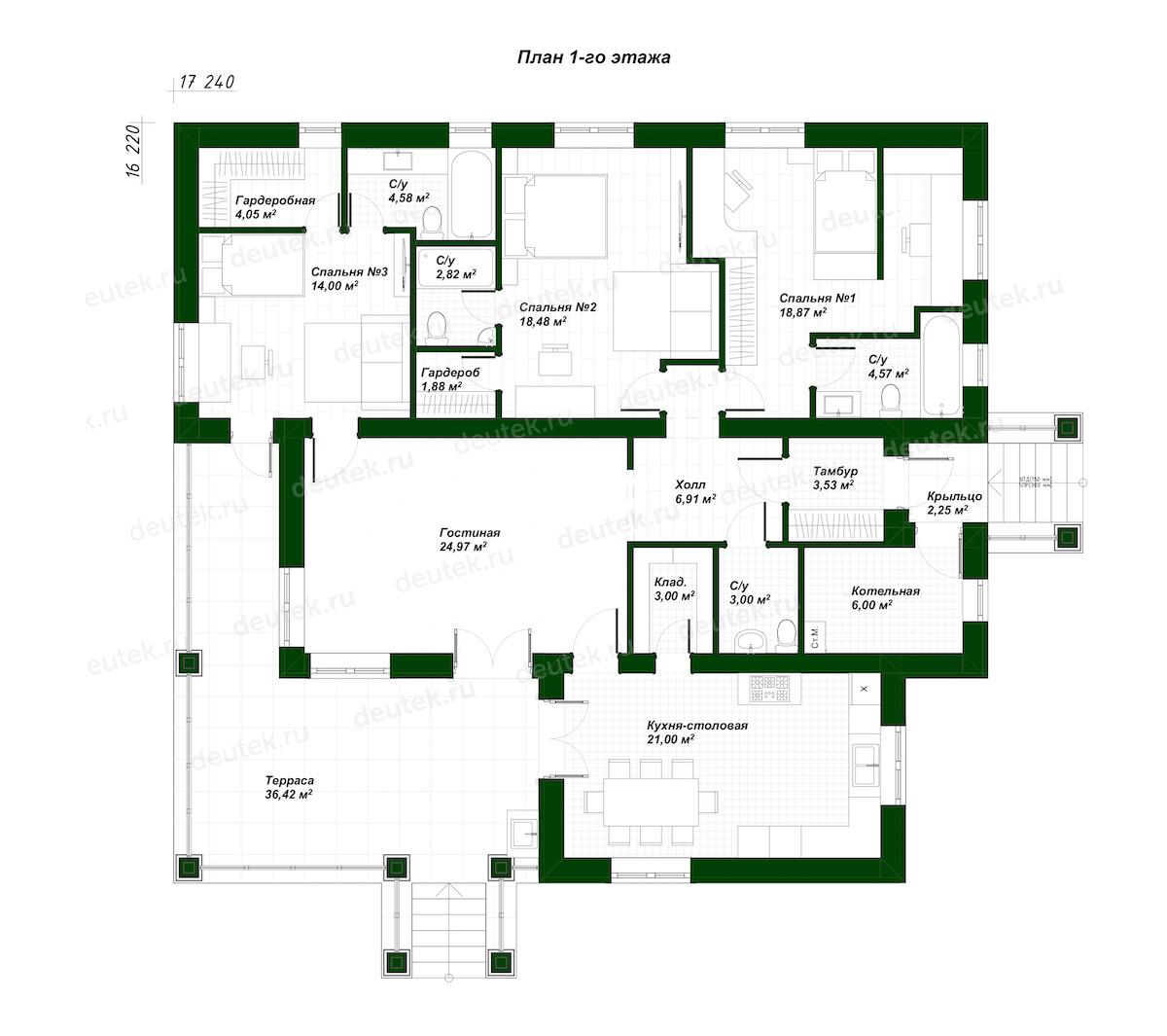 | Материал стен: | Каркас – двойной керамический кирпич, толщина кладки 380 мм. с утеплением 100 мм. |