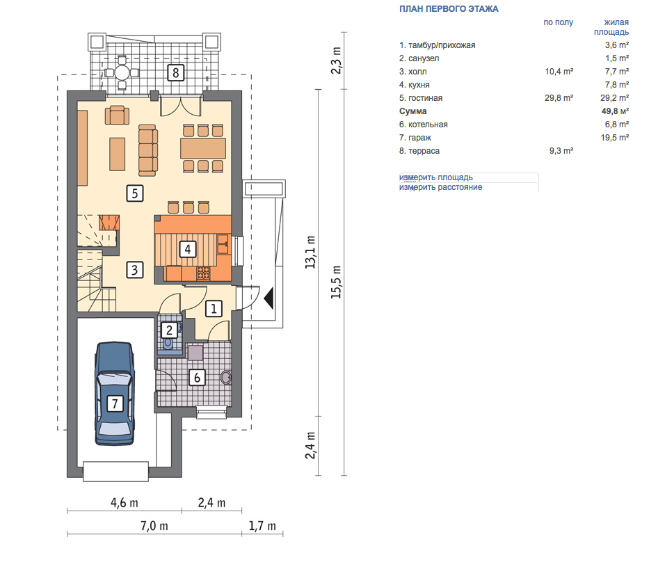 | Фасад: | штукатурка, камень, мозаичная штукатурка |