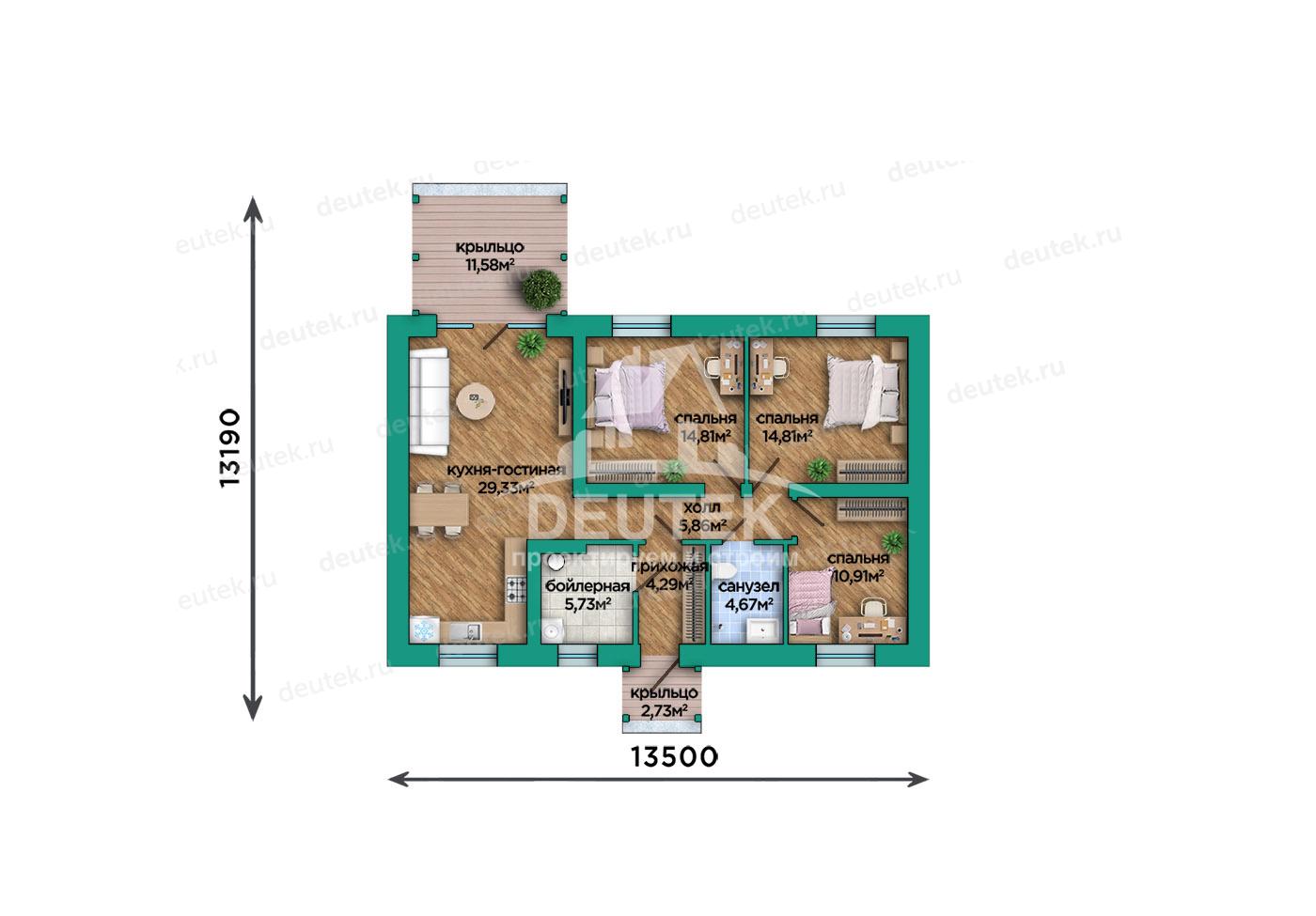 | Габариты дома: | 13.50 x 13.19 м |