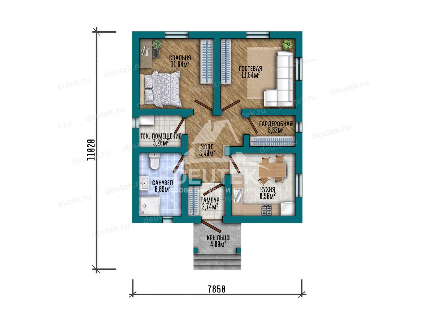 Габариты дома: 7.85 x 11.02 м