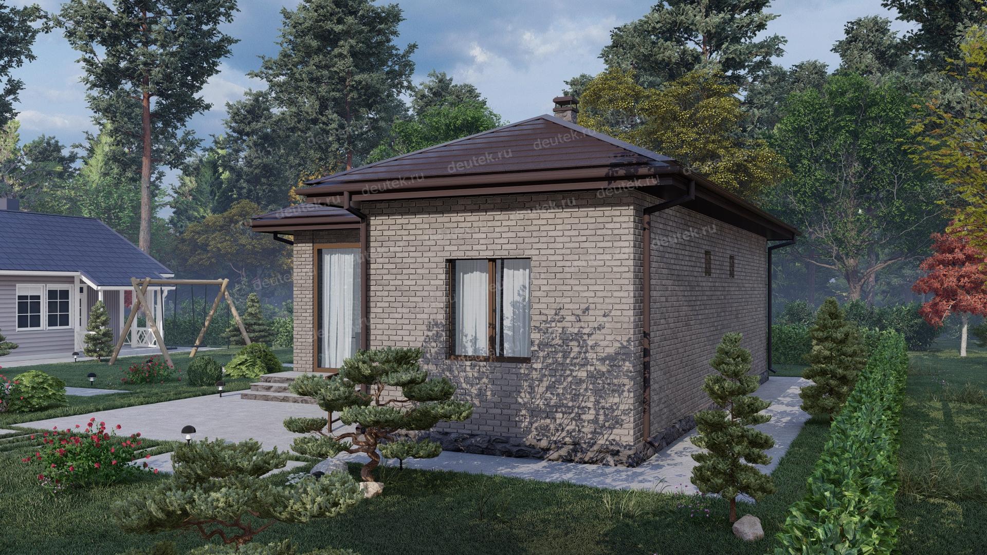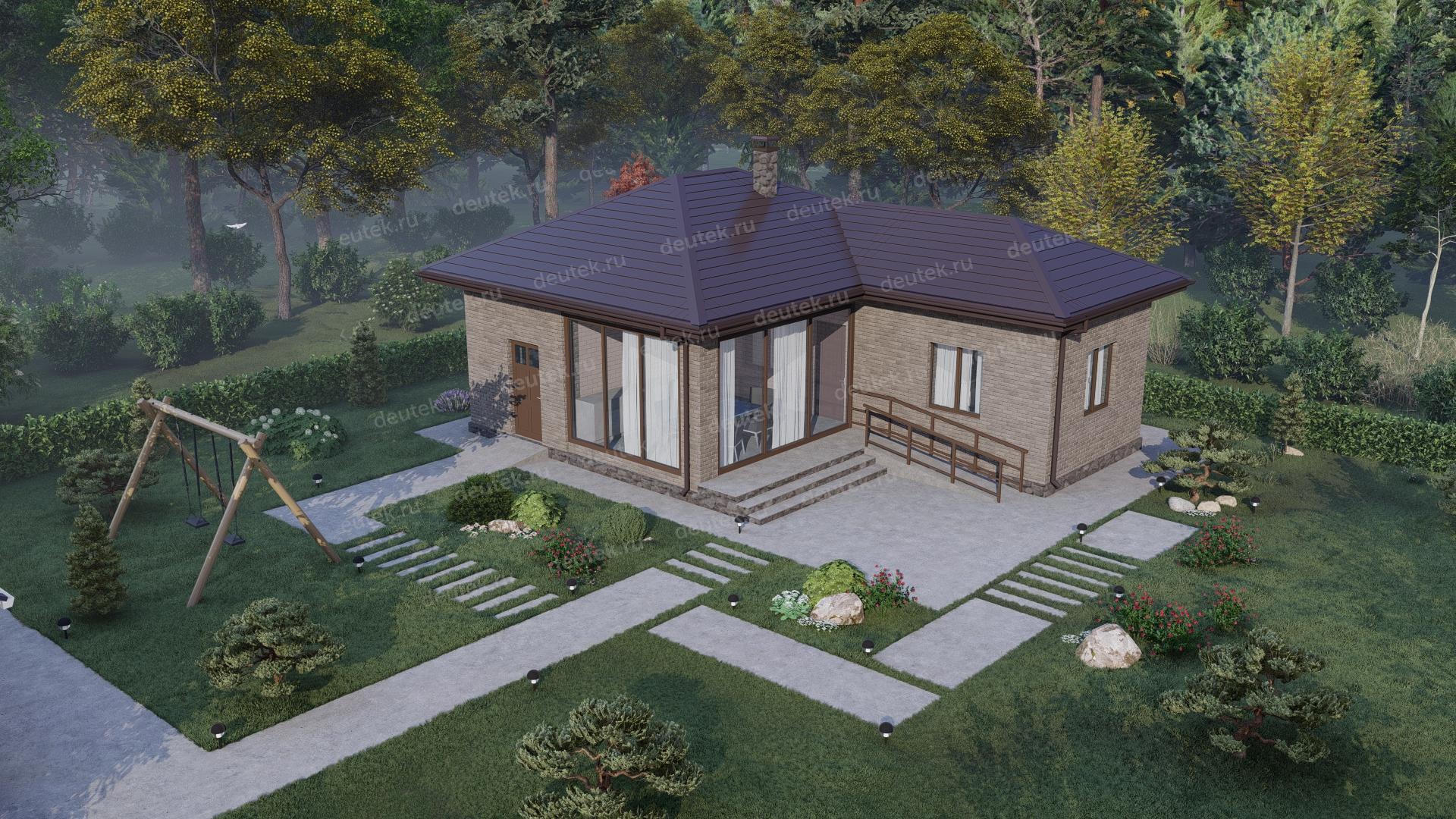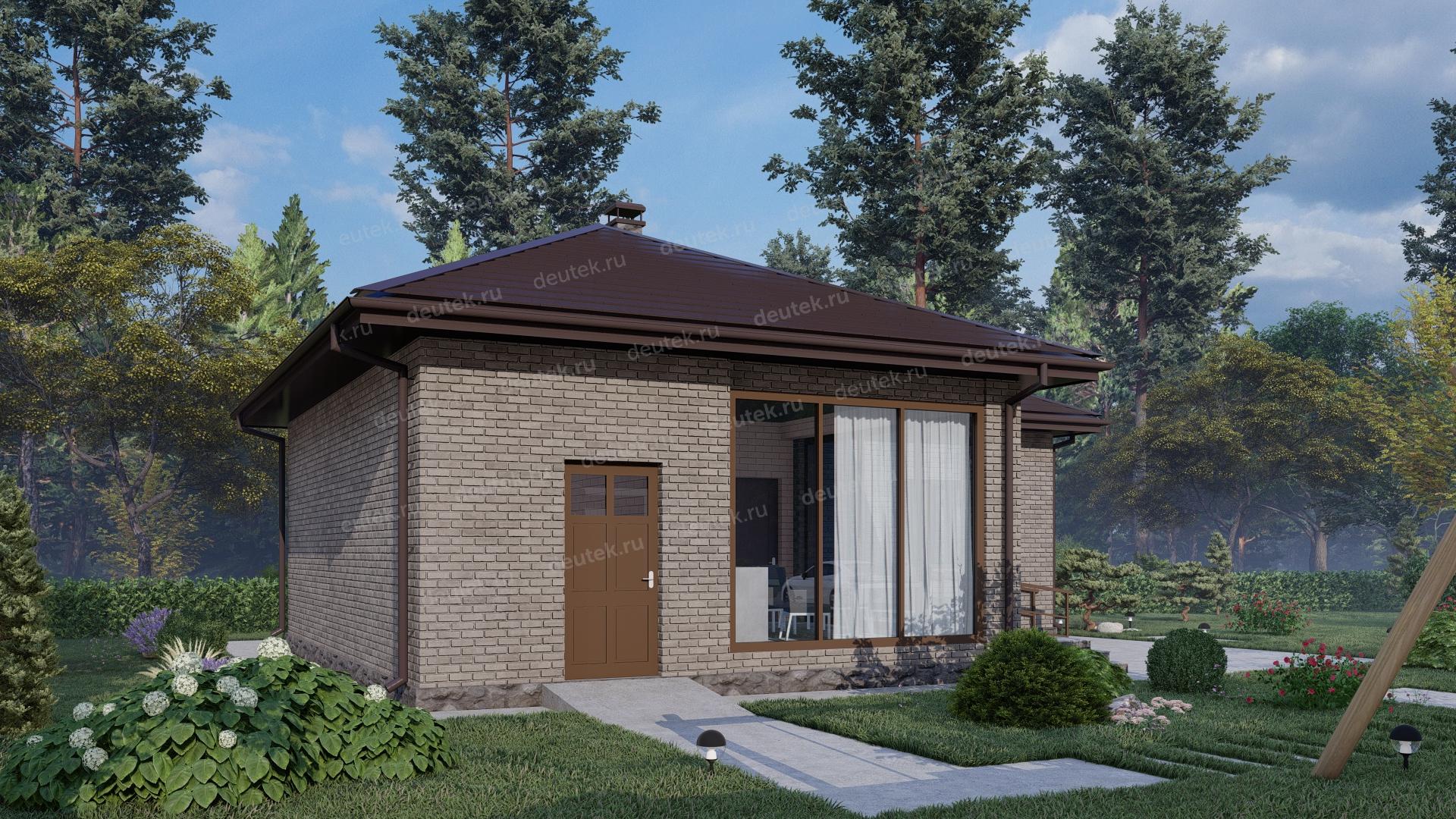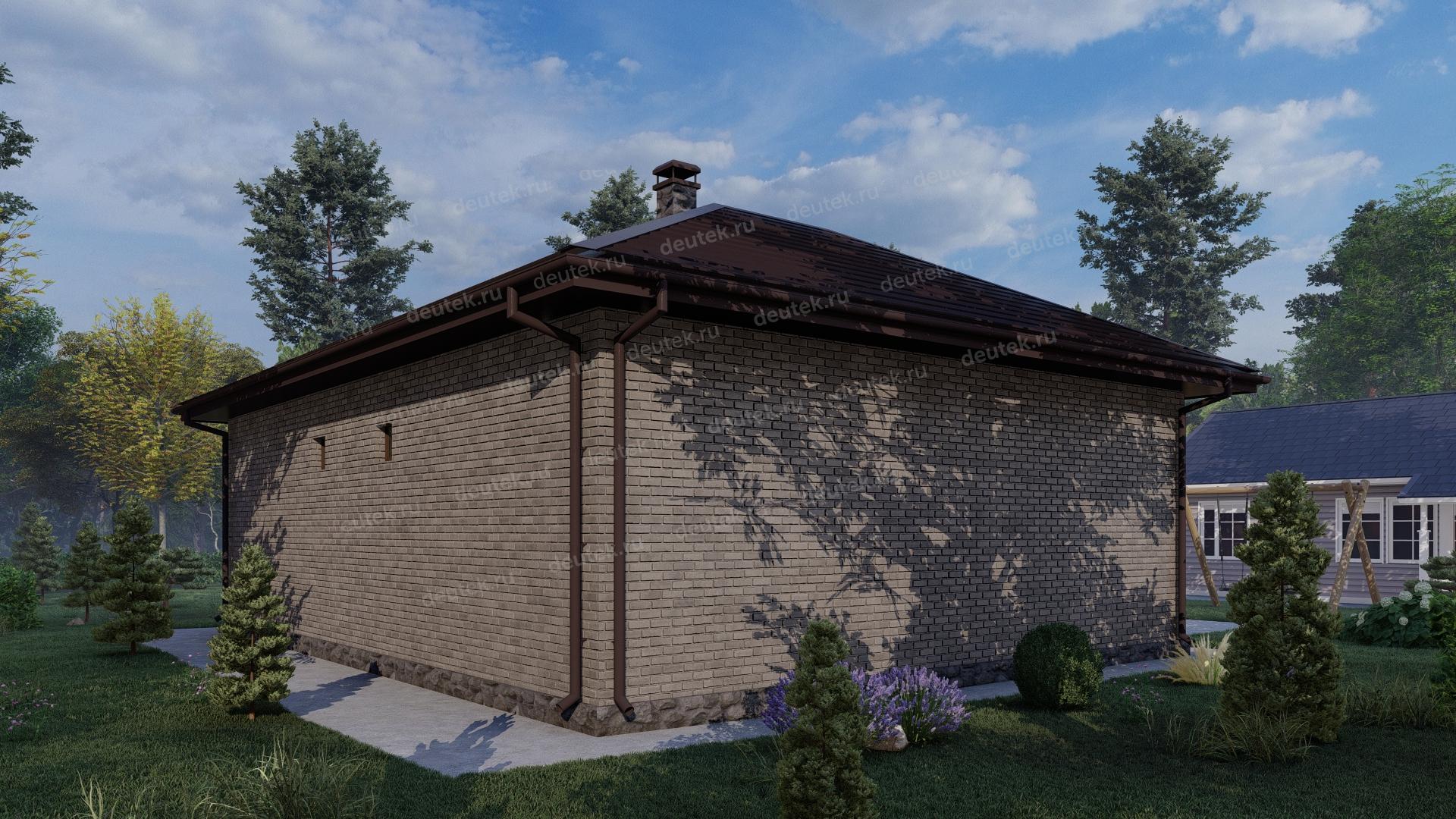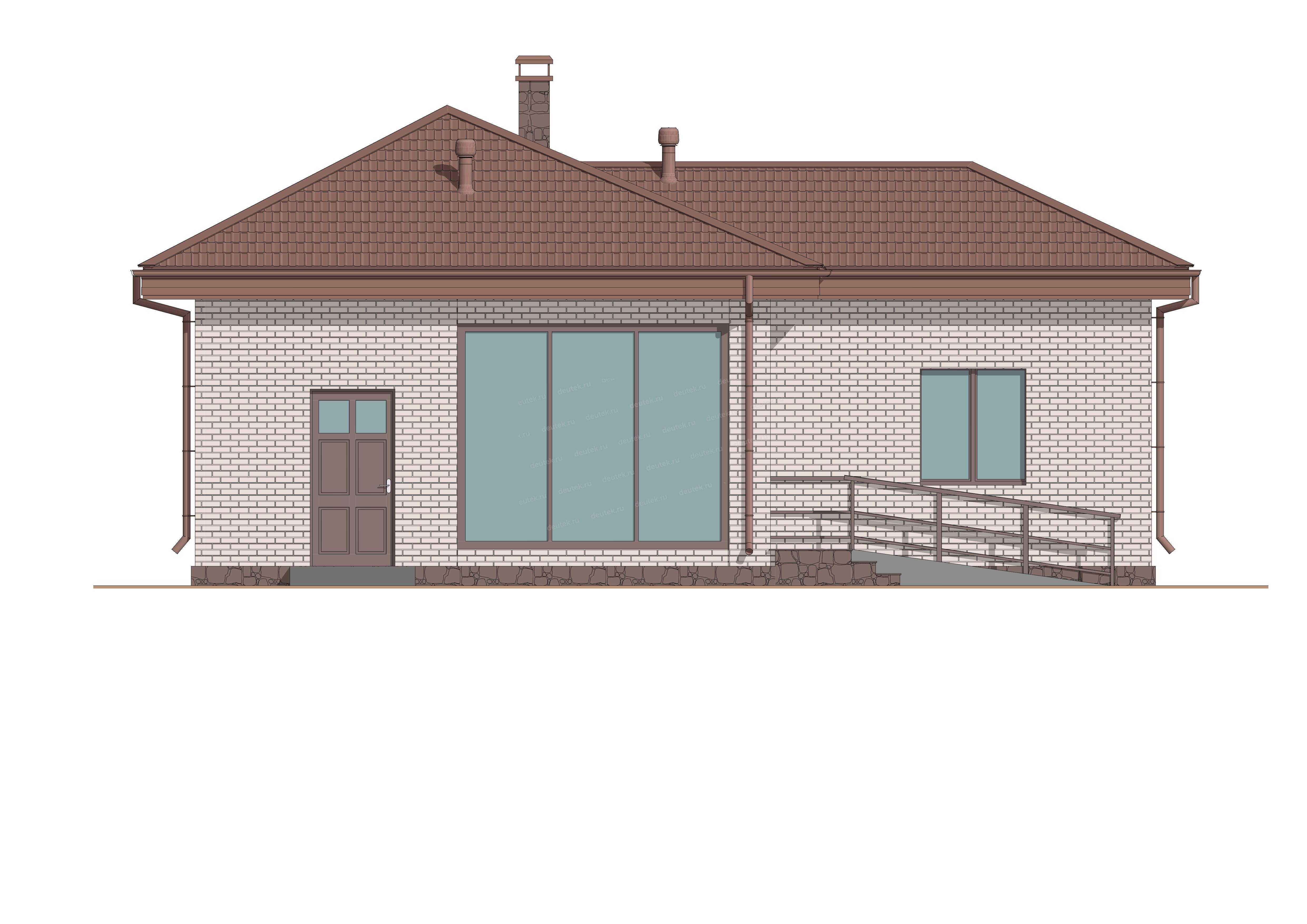 Фасад: облицовочный кирпич, цоколь - декоративный камень