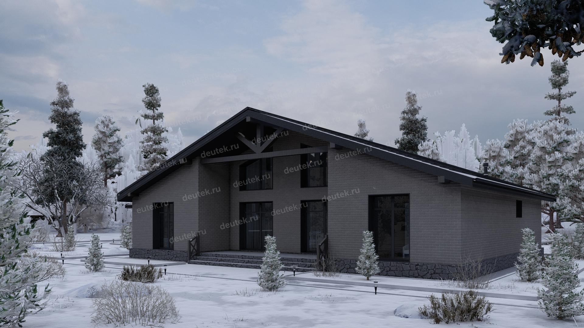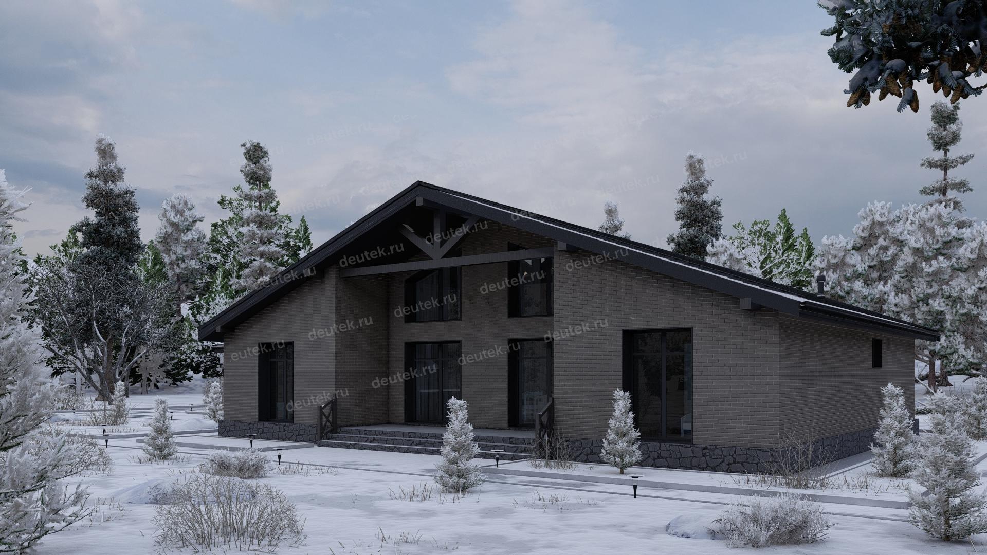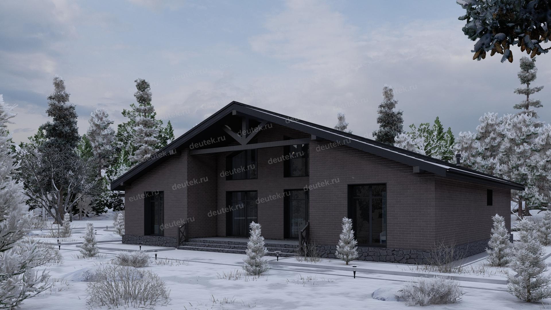 Фасад: облицовочный кирпич, цоколь - декоративный камень