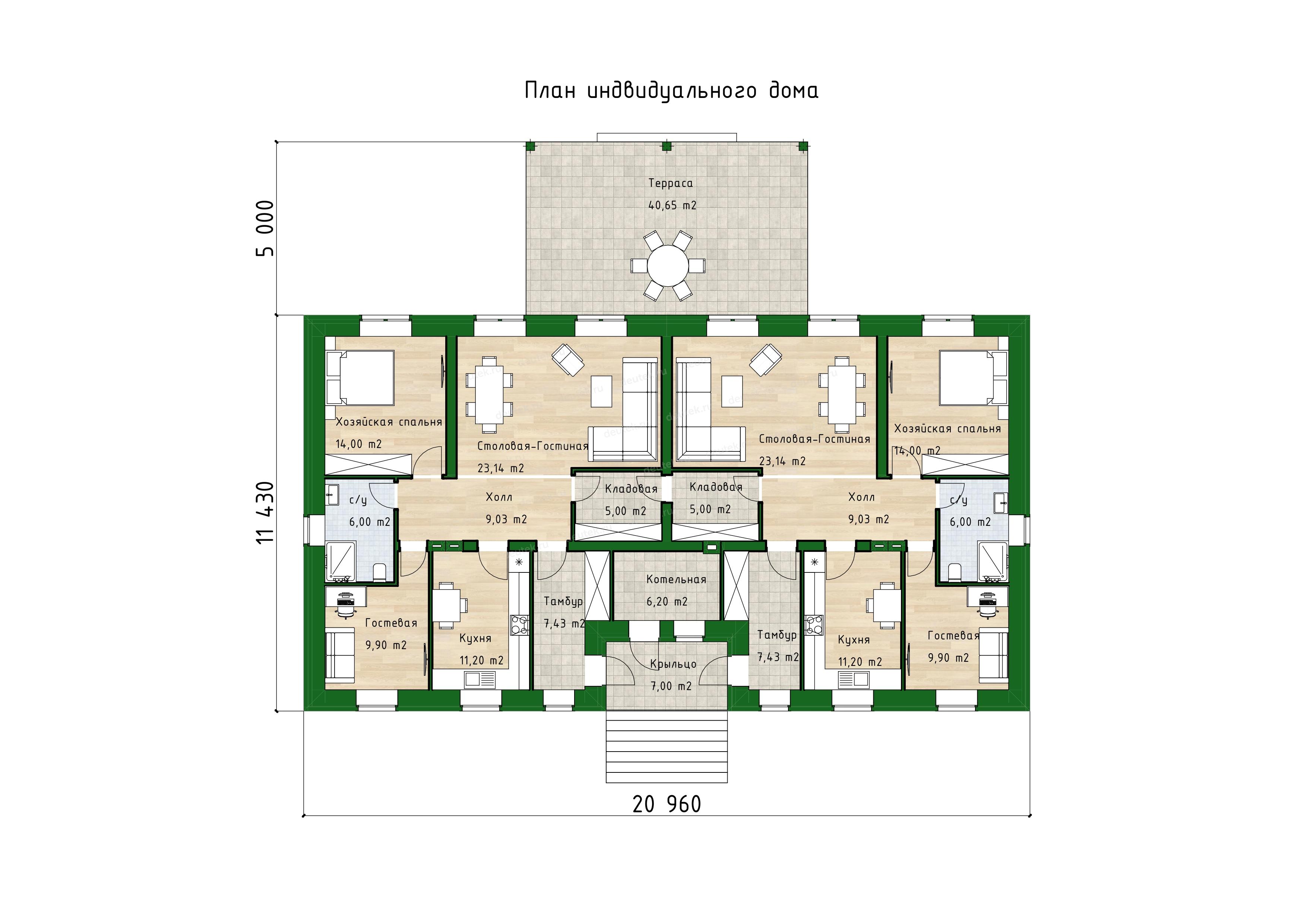 Проект одноэтажного дуплекса с площадью до 250 кв м - P250