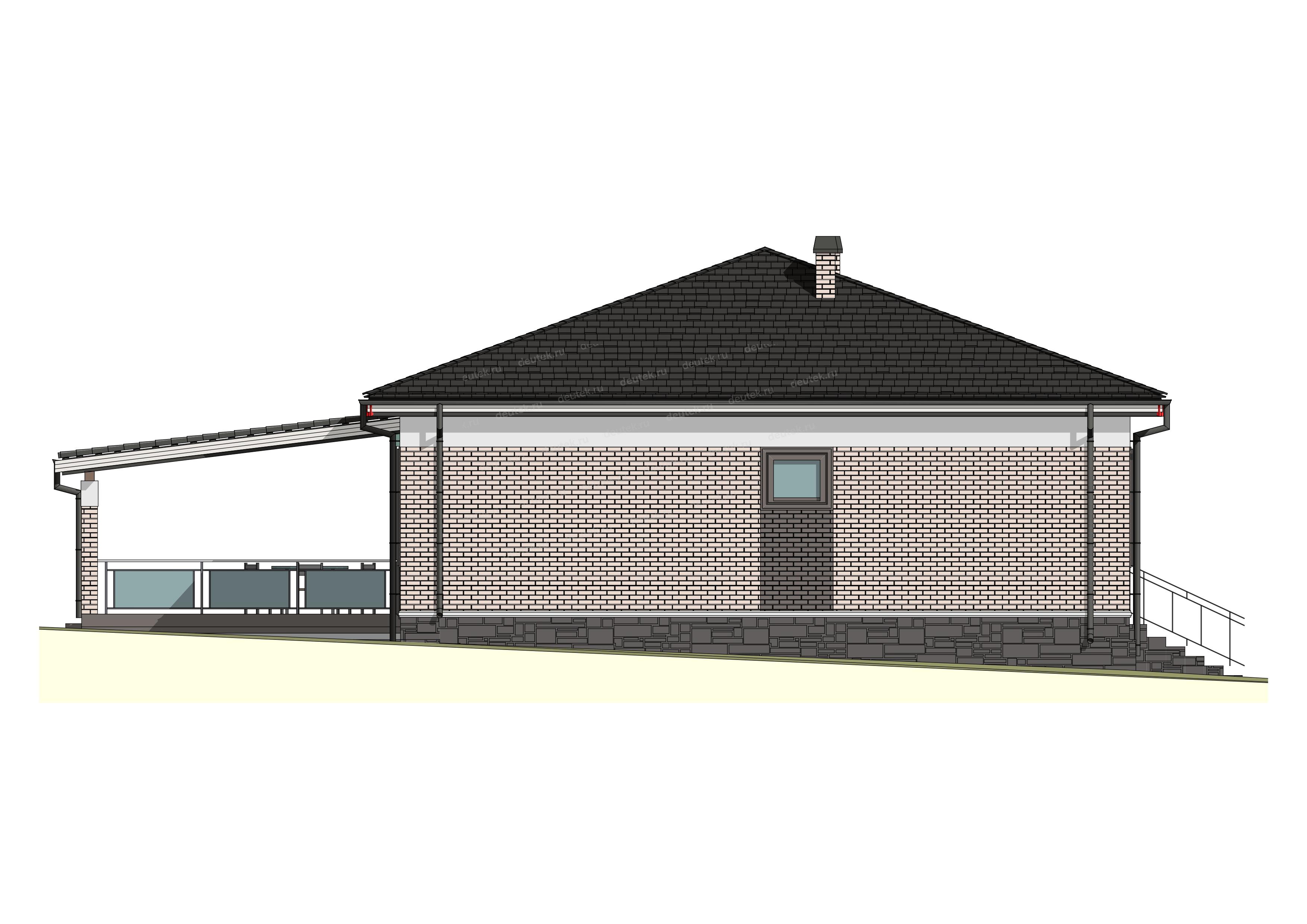 Фасад: облицовочный кирпич, цоколь - декоративный камень