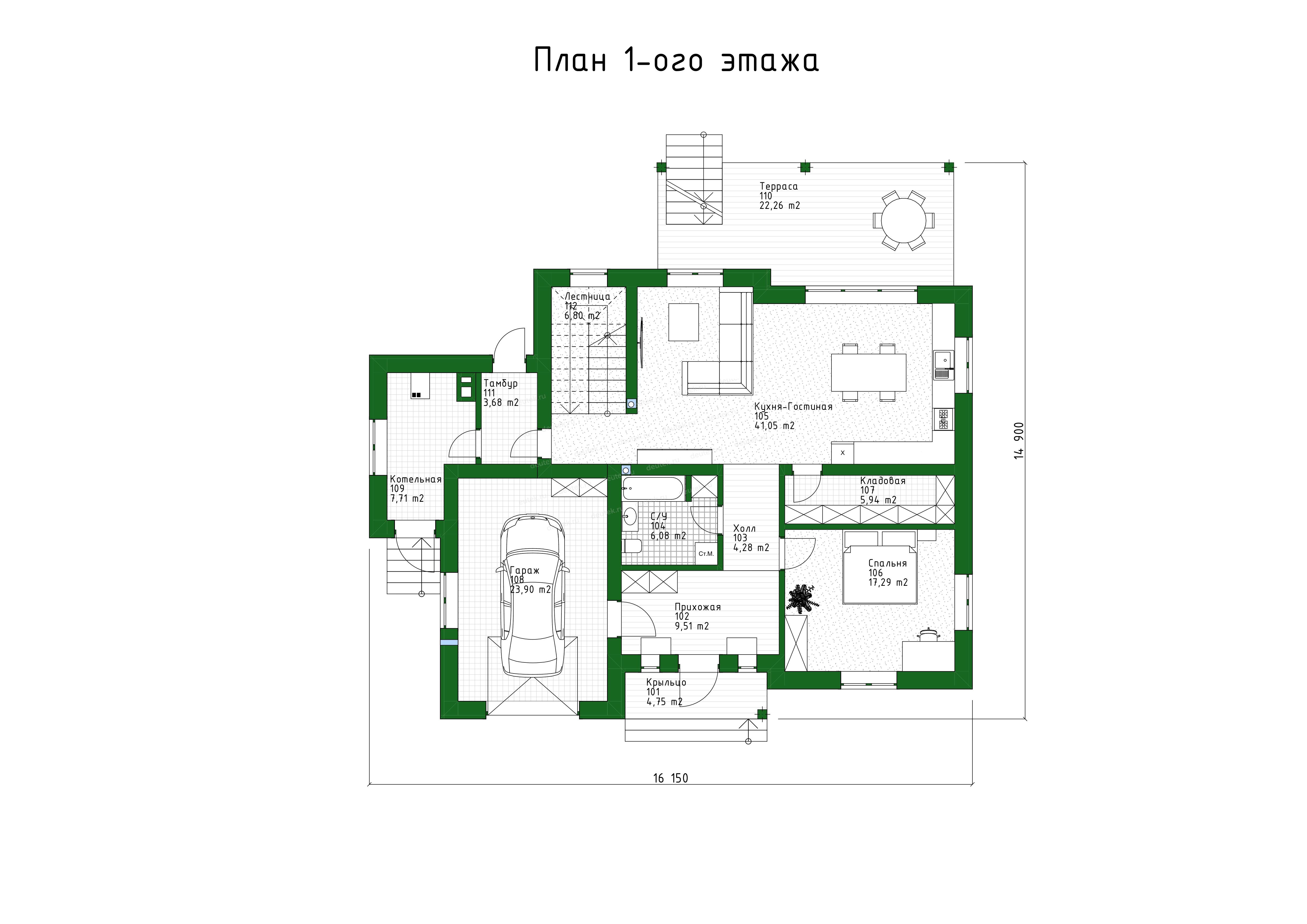 | Материал стен: | газоблок - 375 мм, утеплитель – 150 мм |